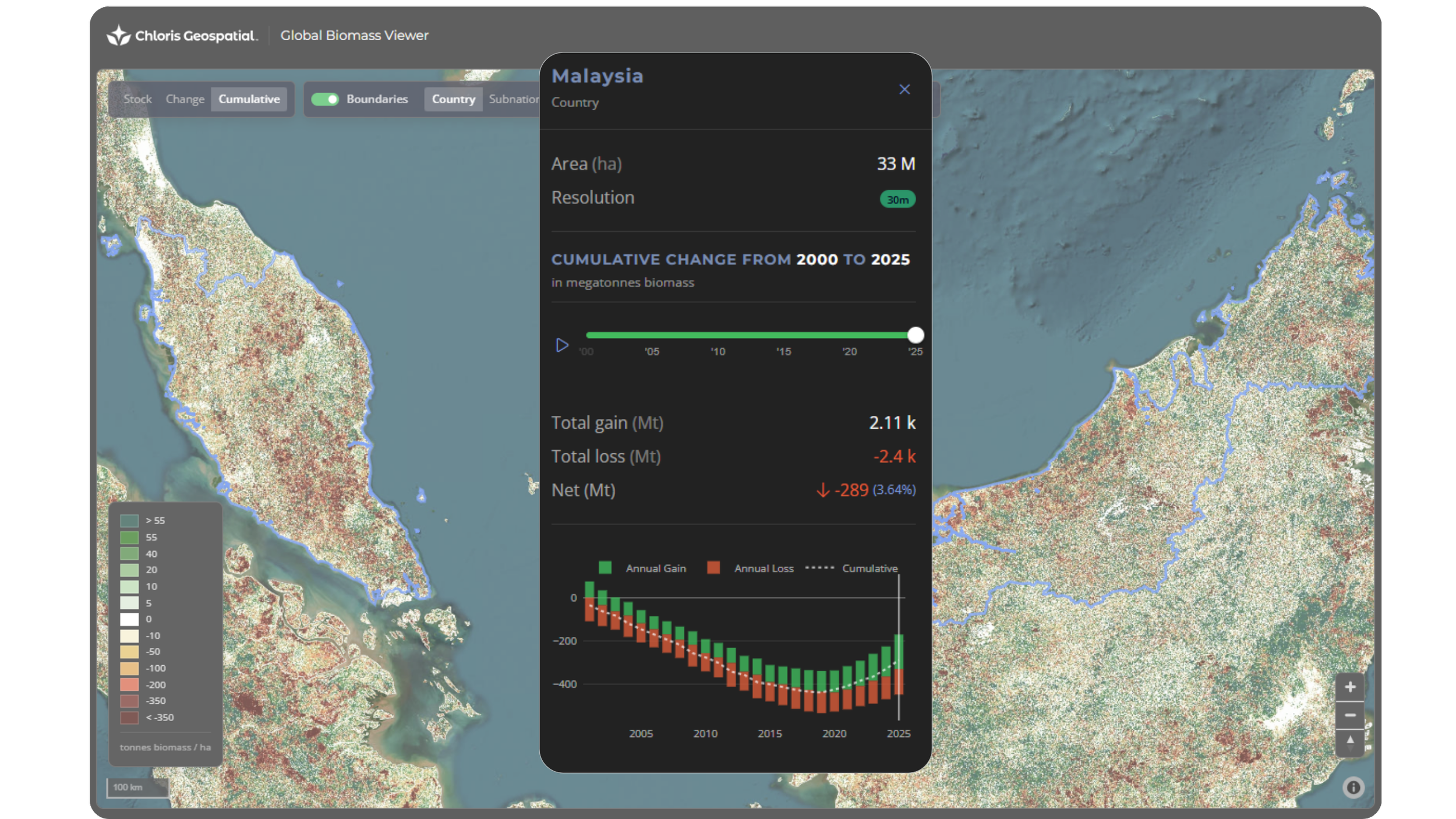 Biomass stock and changes across any region, from project sites to entire countries.