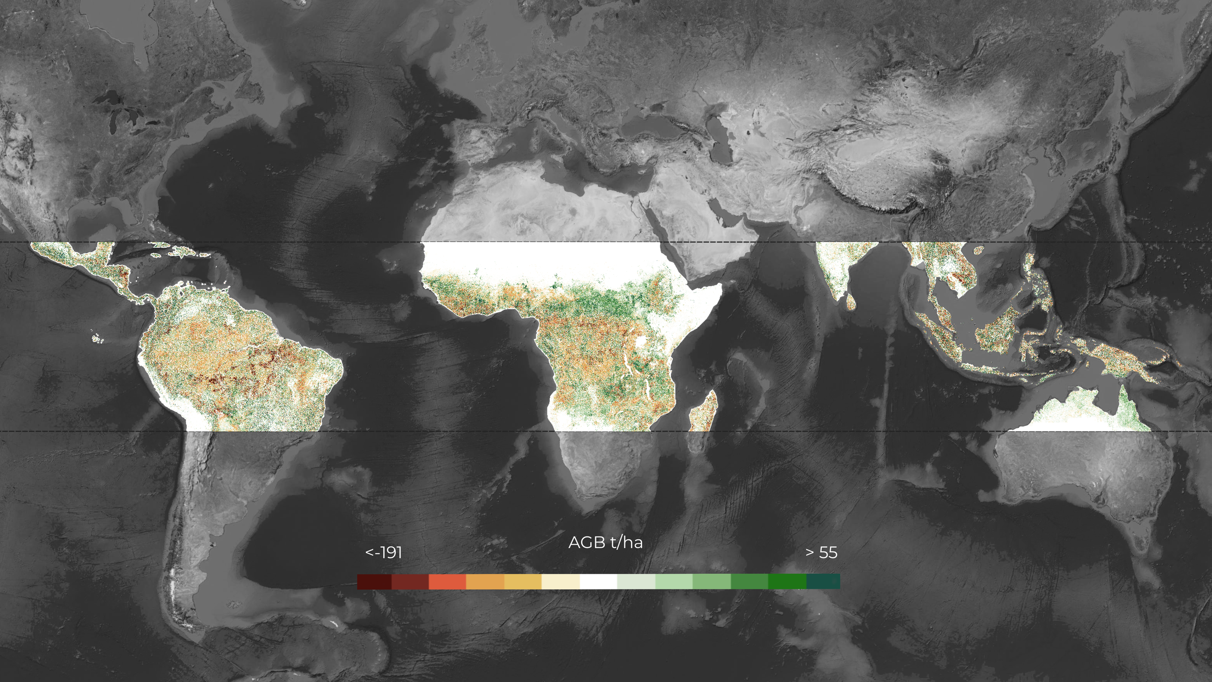 Cumulative change in pantropical aboveground biomass, 2000-2024. Chloris Data © 2025 Chloris Geospatial Inc.